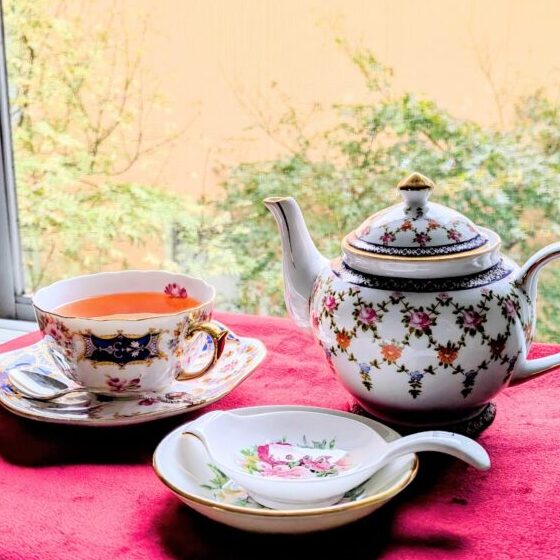 スリランカ産の最高級茶葉と香り豊かなフレーバーティーをティーポットで提供します。クラシックな雰囲気を感じてもらえるように、カップもアンティークのものを取り入れています。