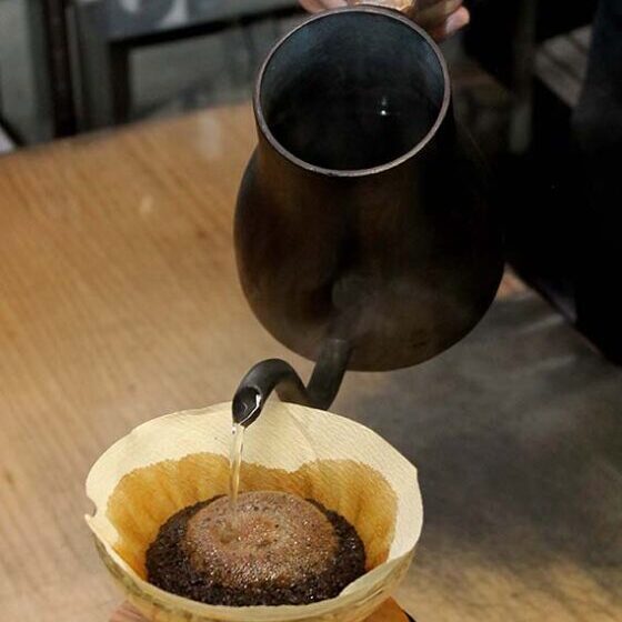 鉄瓶でじっくりと湯を沸かし豆本来の香りとコクを引き出しました。ご自身のペースで鉄瓶からカップに注いで、ひと手間の贅沢をお楽しみください。